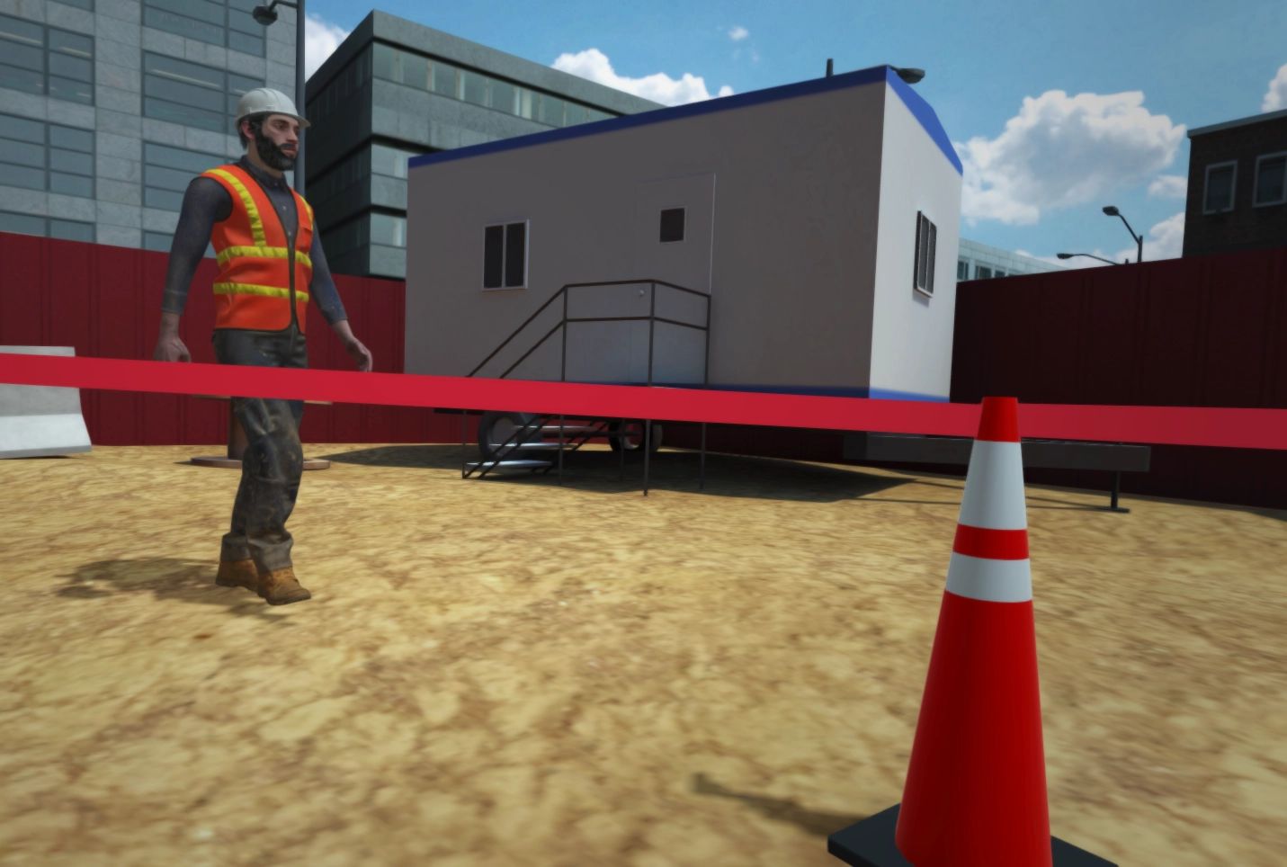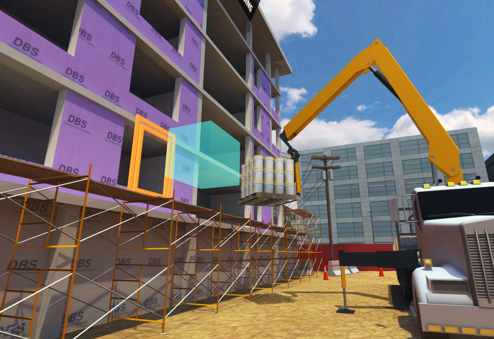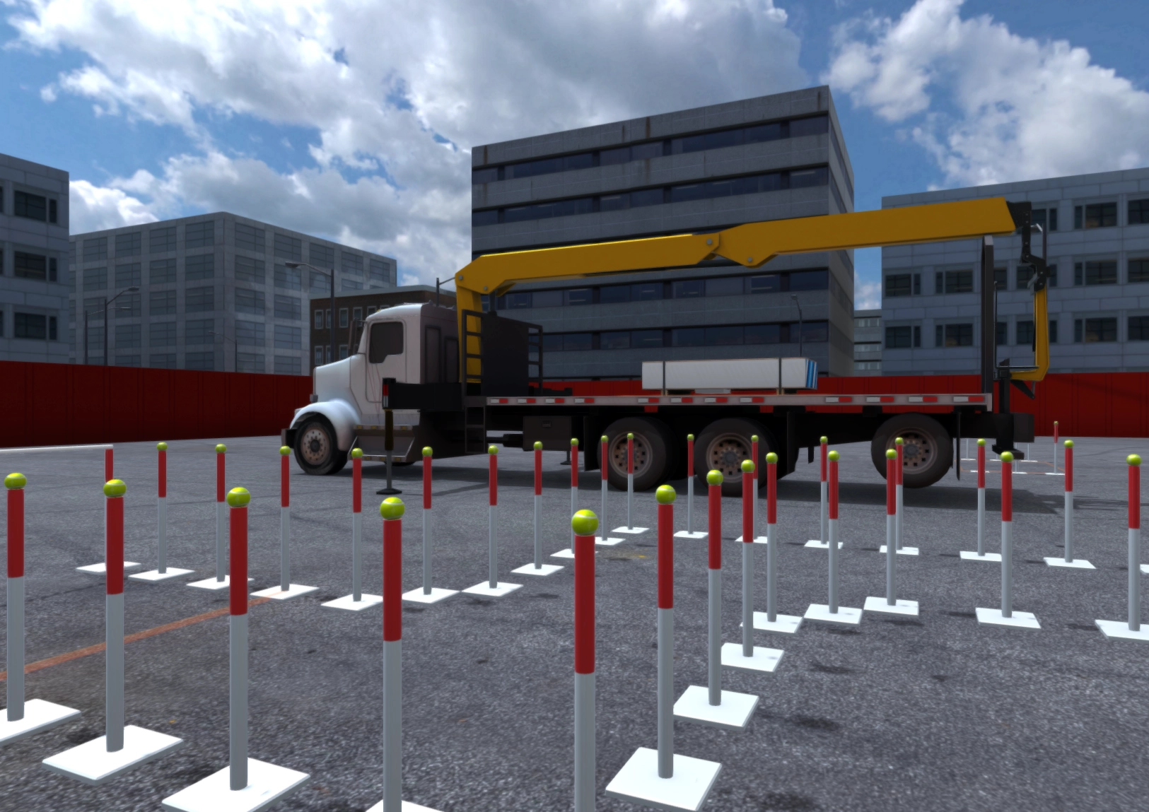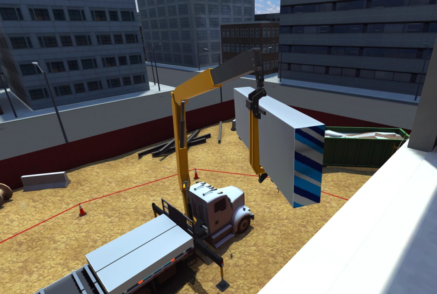 Train operators for drywall delivery via a virtual reality simulator.